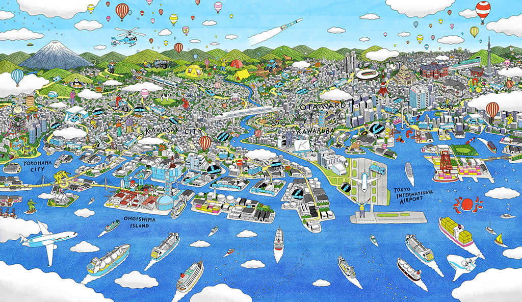 あなたの夢をイラストレーターがその場で絵にします。将来、水素がやってくる夢のみなと川崎港。スタッフに伝えていただいたあなたのアイデアで、夢を載せた未来の川崎港のイラストが完成していきます!